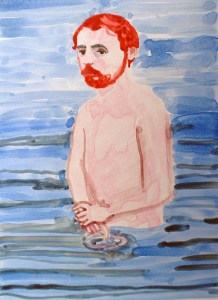 Red Headed Wader, acrylic on paper, 21x16cm, 2020